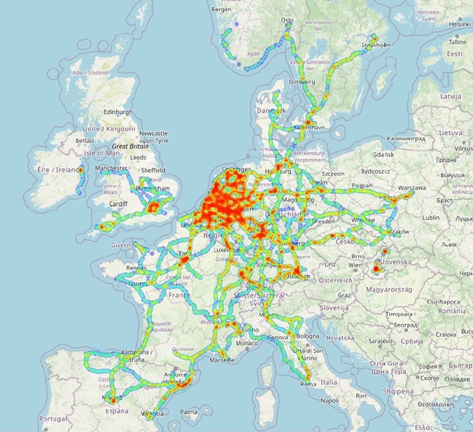 Gereden routes tijdens het project. Afbeelding via tno.nl